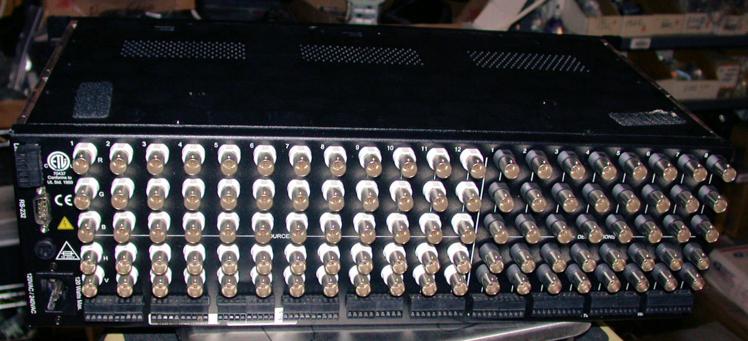 | AMX Autopatch Precis 12x8 HDTV/VGA Matrix Switch 12x8 HDTV Component Video & Digital Audio (or) 12x8 RGBHV (VGA) 300mhz & Analog Audio  Actual Picture of item This unit will not come with any phoenix connectors or audio pigtails. Why do you need this? (Home Theater) You have your Home Theater and Life is good, Then you start adding more HD sources and/or Display devices, now you have a pile (or will) of spaghetti wiring and limited ways to switch from source to source to destination. HDTV can be a real challenge when growing a Large Home Theater and/or Whole House System. A New Professional Matrix Switcher will set you back thousands and this one I am offering costs over $6000 and is still in production! If you have a Home Theater and two or more HDTV sources, a Projector and a Preview Monitor, along with a everyday TV, you need this switcher! Perhaps you would like to add a preview (or cue) monitor. As your system grows all you have to do is plug in new components, no crazy wiring schemes to get you by each time you add something (let alone explaining to your other half how to operate things!). Only a matrix switcher can allow you easy connections of all your equipment without special patching. This unit also features Digital AND Analog Audio, why do you need both? Many older (and some newer) HDTV's do not have Digital Audio inputs, unless you set up a separate Digital ready receiver (sound around) in each zone most likely you will need analog audio to make your installation seamless. Digital to analog adapters DO NOT WORK WELL and many do not decode Dolby so running the actual analog audio is still the most reliable method. This is a professional unit that uses BNC Video jacks and Phoenix Audio Connectors we do offer BNC to RCA adapters which you can read more about below. This unit will include the phoenix connectors for audio along with the audio pigtails which you can read more about below. Why do you need this? (Computer Rack) This matrix will allow you to connect up to 12 computers and up to 8 monitors, then you can switch ANY computer to ANY monitor, this includes any number of the 8 monitors to 1 computer. Examples would be 1 computer to all 8 monitors, 2 computers to 4 monitors each, 1 computer to 1 monitor + 2nd computer to 7 monitors. ANY COMBINATION is allowable, get the idea? Great for entertainment displays, stock ticker boards, gaming systems, or just redundancy. This is much better then a standard KVM which only switches one monitor. Use this in conjunction of a KVM for keyboard/mouse switching and even further extend your system. This is a 300mhz system which will allow you to use 1200x1600 or even higher res. I can also help on the specialized wiring needing for Computer and other specialty use. Use with Computers and HDTV at the same time! While this Switcher will NOT convert signals you can dedicate some of the channels for Computer (VGA) monitors and some of the channels for HDTV (Component Video). Basically you will be using it as two smaller switchers for example use 4 inputs and 2 outputs for Computers and Computer Monitors and the remaining 8 inputs and 6 outputs for HDTV. You CANNOT Switch HDTV Sources to Computer Monitors and visa-versa however you CAN add a converter to allow this if needed, contact me for more info on this. What Exactly is it? This is a TRUE 12x8 Matrix Switcher/Router which means that you can connect 12 HD component or VGA Sources and 8 HD/VGA Destinations (Projectors, Displays, Recorders, etc). Via the magic in the box ANY SOURCE can be electronically switched to ANY DESTINATION without any manual wiring or patching. You may have seen these on eBay before and there may be some up for bid right now BUT several things that make ours special. First off, see our feedback- We don't leave our buyers unhappy, Second, we have electronic engineers and technicians on staff that have refurbished and re- certified every aspect of these units to 100% perfect, this includes rebuilding fans and power supplies allowing us to provide a full 6 month warranty. Also included is an RS232 Cable and Software for a standard pc to control it + Full Manuals in PDF. | Controlling your system If you have an upper-ended control system like AMX, Control4 or Creston just plug this unit into an RS232 port and smile, for the rest of us there are several lo-cost ways to control this switcher. First you can use the built in front panel controls (a $800 value alone) or If you like using an IR remote control, then home controllers like "ADI OCELOT" and "HomeVision" both can receive IR and send the required RS232 signals to the switcher as well as send additional IR signals to your other equipment to create complete macros such as "system-on" and "system-off". Add-on control box's can be as simple as "IR to RS232" or Higher end which support "IF-THEN" type programming to keep your whole system and/or house in check. X10 is also standard in both of the suggested controllers Xantech also maks IR controllers. (CONTROLLER NOT INCLUDED). Why buy from Us First off unlike most sellers on Ebay, we are not selling equipment with the "I know nothing" disclaimer. We have Re-certified this unit and will stand behind it 100% just like the factory would if you bought a new one, should you have any issues we have more slide-in replacement modules and/or whole units which we will gladly exchange. We can also help with initial system installation and have many more tested and approved widgets selected to make your system grow more easily, If you want to grow a large system then buy this Switcher and consider our help a fringe benefit of the sale or "Value Added" as some would say. All needed Software, Adapters and Special Cables are Included! Included is a RS232 Cable for connection to your computer (or controller), Power Cord, Software and Support Files on CD. You will Receive this ready to go and all materials needed to get it up and running in 15 minutes or less. In addition we will be he