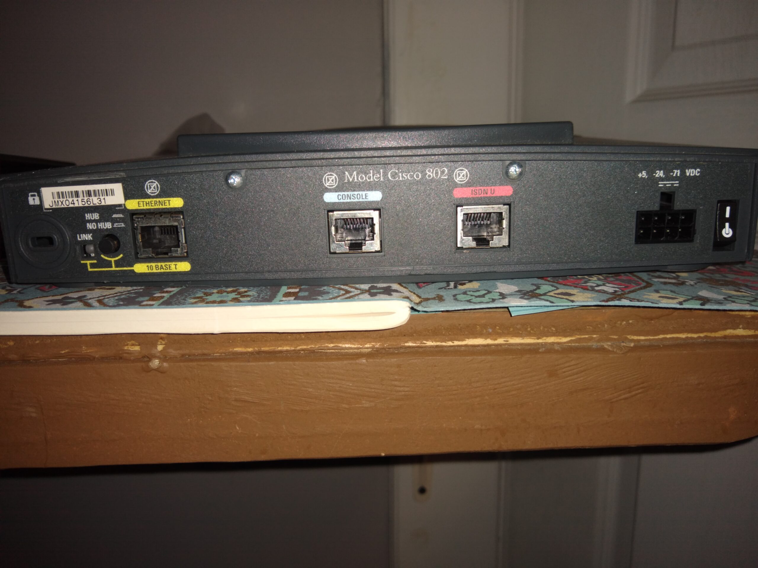 Cisco 800 Series Cable Router Cisco 800 Series Cable Router Model: Cisco 802 801-805 Router has an Ethernet, Console, ISDN U, (+5,-24, -71 VDC) ports.