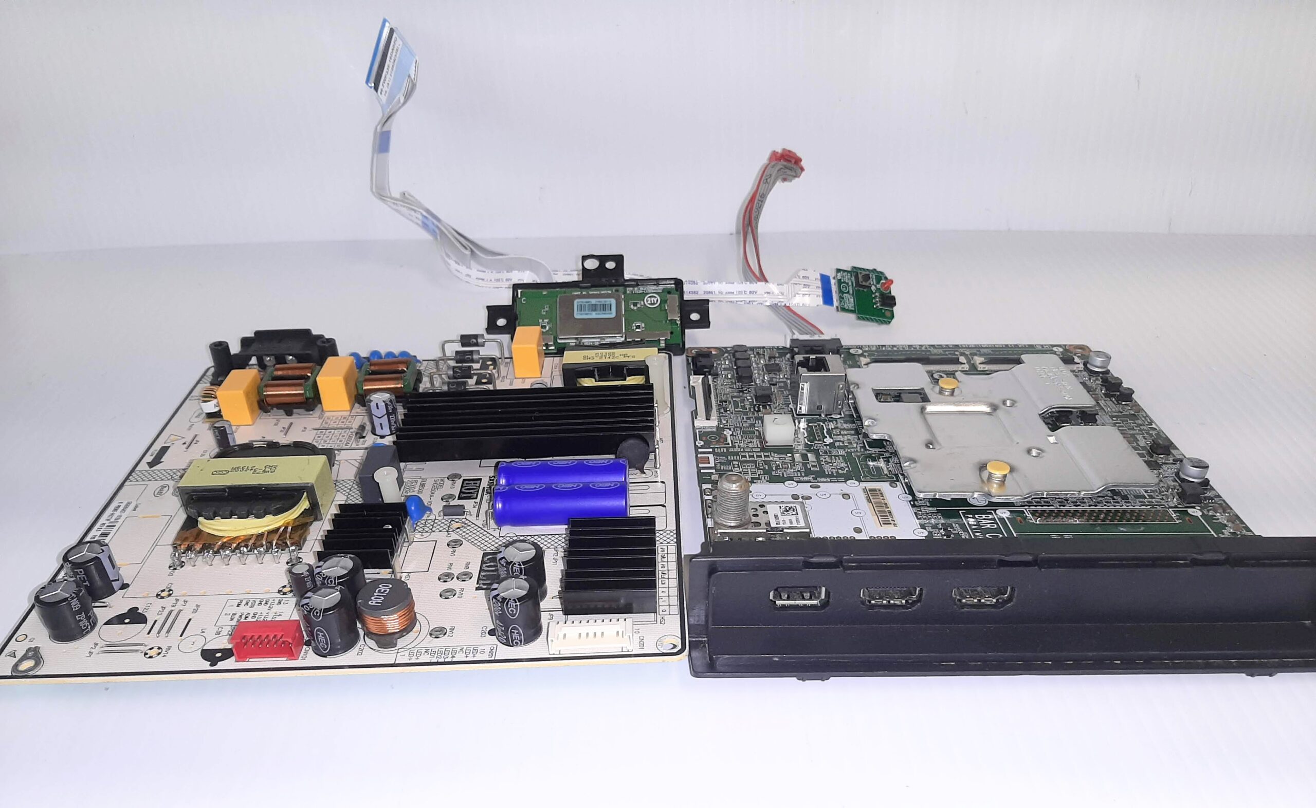 Please note, this board set won’t fix lines in screen which will be the screen itself or if your TV powers on and off immediately—that issue is usually caused by faulty backlights. For those, check out our other listings.