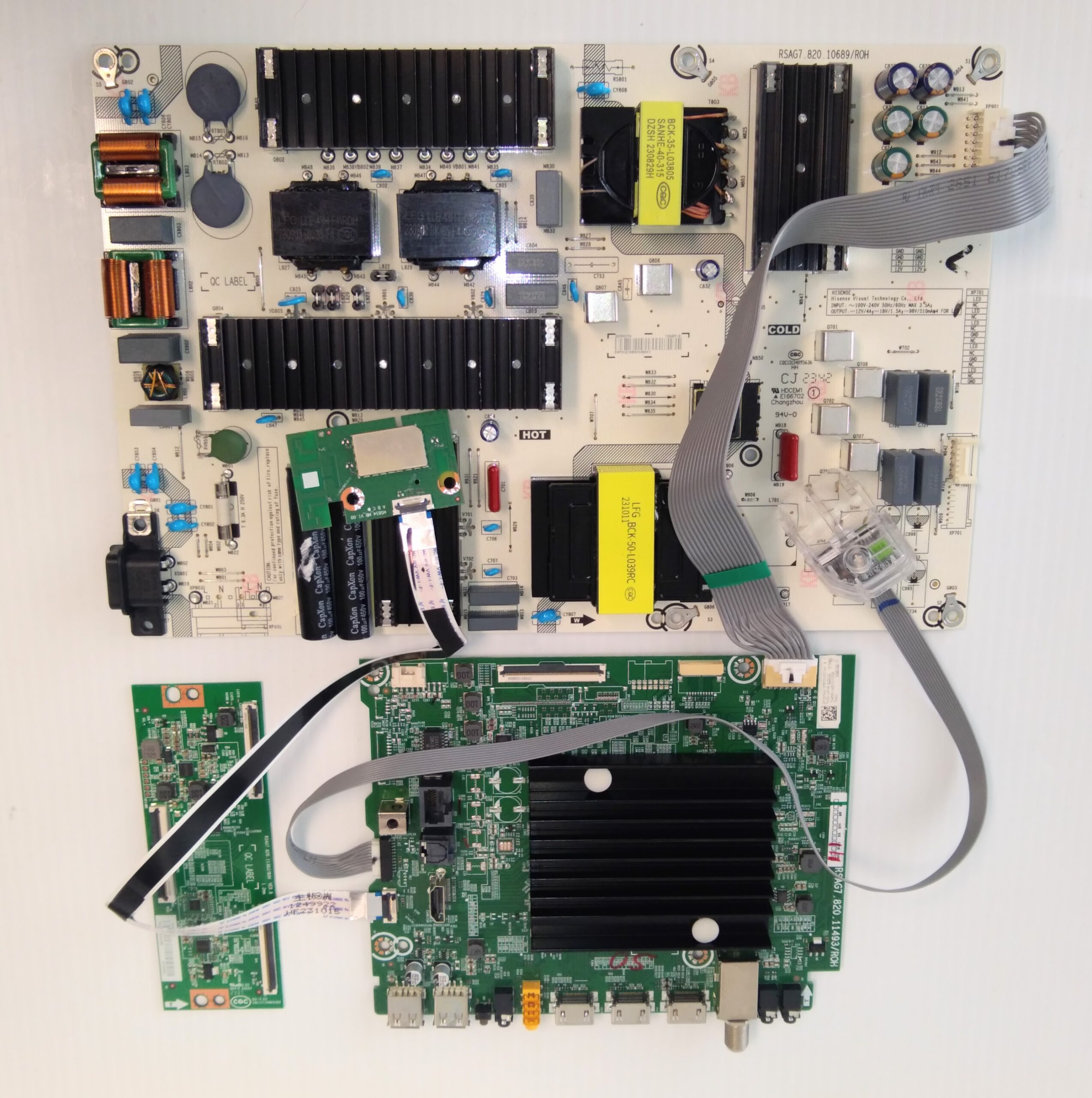 For sale is a used PCB board set taken from a cracked-screen LCD TV . The boards were tested to power up before removal, ensuring they’re in working condition. We’re selling the complete set so you don’t have to troubleshoot which boards might be faulty—replace them all and your TV should be good to