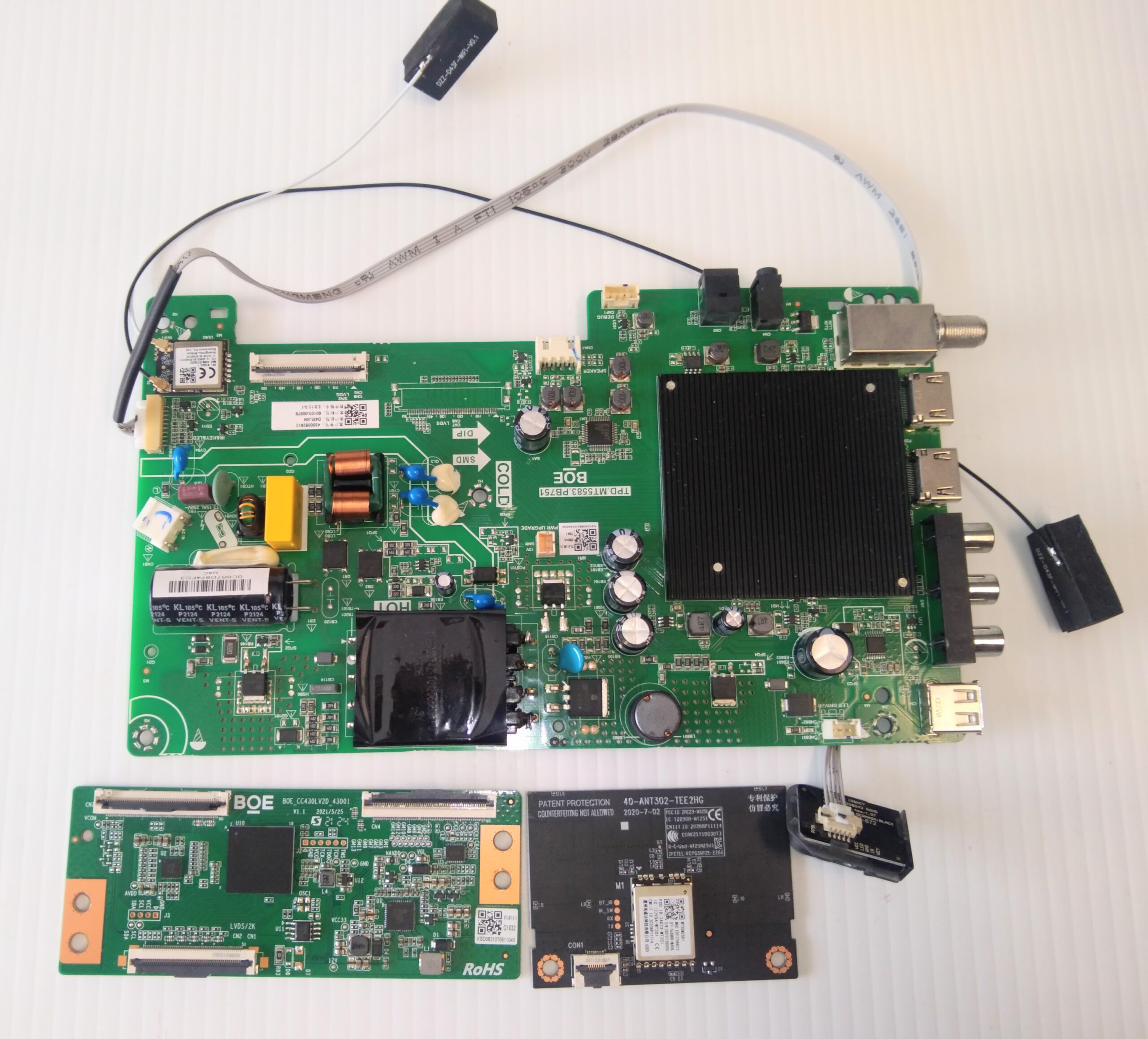For sale is a used PCB board set taken from a cracked-screen LCD TV . The boards were tested to power up before removal, ensuring they’re in working condition. We’re selling the complete set so you don’t have to troubleshoot which boards might be faulty—replace them all and your TV should be good to